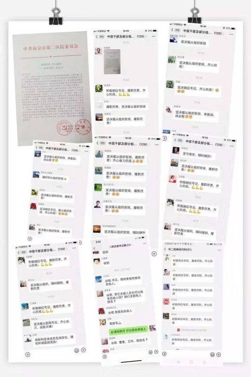 这是一场看不见硝烟的战役,在接到省卫健委驰援武汉的指令后,南京地区各级医疗机构广大护理人员积极响应,他们通过各种请战书、微信报名,请求奔赴抗击疫情第一线,仅南京市第二医院2小时内就有380人报名。