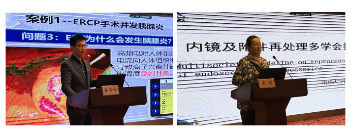 在学术交流的环节,消化内镜护理专委会秘书、南京鼓楼医院消化内镜中心马莉、消化内镜护理专委会委员、江苏省中西医结合医院消化内镜中心刘巧、消化内镜护理专委会委员、南京市中医院消化内镜中心章巧三位老师分别就《食管狭窄的治疗与护理配合》、《ESD 的护理配合》、《双人操作下内痔治疗的护理体会》进行了经验分享。