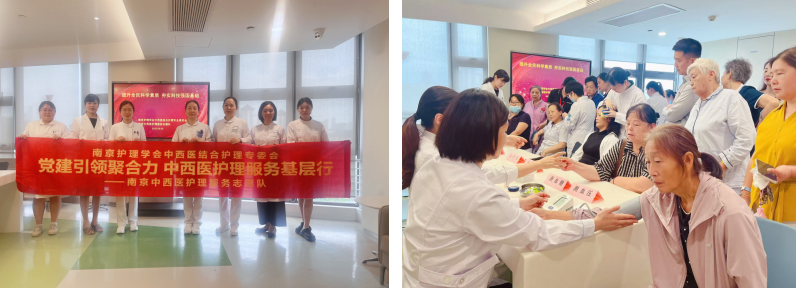活动二:南京护理学会中西医结合护理专业委员会品牌项目“南京中西医护理服务志愿队”,持续推进党建服务活动,于9月9日走进南京医科大学第二附属医院,开展“中西医结合特色联合科普活动”,让群众近距离体验现代科技与传统文化的激情碰撞。主要内容包括:科普宣教、中西医结合义诊、微生态人类菌脉会客厅参观。此次活动,不仅让广大群众享受到优质的医疗护理服务及中医药文化魅力,更了解到现代医疗科技的发展正在加速前进,科技创新将突破更多的医疗瓶颈,为更多更复杂的患者带来康复的希望。活动由专委会委员7人参与,受众百姓50余人。