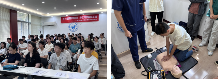 活动三:9月17日南京护理学会门急诊护理专委会组织急诊学组委员30人,在东南大学仪器科学与工程学院中心楼成功举办“急救技能进校园”专题科普活动。通过理论讲解与实操演示普及急救知识技能,营造了校园安全氛围,提升了校园整体对安全急救的重视程度,为构建平安校园增添了重要一环。本次活动共有93名师生参加,在科普的同时,关注大学生的身体健康,为他们组织血压、血糖测量,健康咨询等。