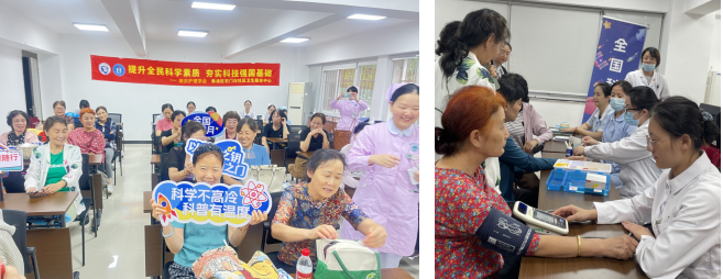 活动五:9月24日南京护理学会教育专委会联合秦淮区四方新村社区卫生服务中心在光华路街道四方新村党群服务中心开展主题为“全民科学素质,夯实科技强国基础”的科普活动义诊活动。本次活动邀请多位经验丰富的护理老师通过知识讲解、互动示范、血压血糖检测及健康宣教手册发放等多种形式,向社区居民普及科学防护知识,以饱满的热情,耐心解答居民们的个性化健康需求。本次活动为社区居民提供了全方位、多层次的健康科普服务,近70名群众积极参与,完成血压测量30人次、血糖检测40人次、发放科普健康手册近50余份,有效提高了居民对糖尿病的认识和管理能力。不少居民表示,此次活动内容丰富、实用,让他们受益匪浅。