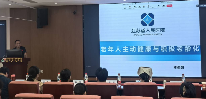 江苏省人民医院总务处兼基建处处长李勇强主任系统阐述了主动运动在延缓老年机能衰退、改善心肺功能、提升生活质量方面的作用。他结合国内外指南与临床实践,提出“个体化、适度、持续”的运动原则,并分享了适合不同健康状态老年人的有氧运动、抗阻训练及柔韧性训练方案,强调运动是实现“积极老龄化”的重要路径。