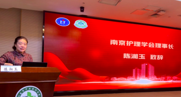 陈湘玉理事长致辞,理事长与大家共同探讨了中西医结合护理专委会的职能作用和核心价值。她指出,南京护理学会中西医结合护理专业委员会始终以学术引领为立足点,紧扣行业发展脉搏,将西医的精准评估与中医的辨证施护有机融合,让护理服务既具科学严谨性,又含传统医学的人文关怀。2025年,专委会已在中医适宜技术推广、护理案例创新、学术成果转化等领域取得显著成绩。理事长坚信,在专委会的引领下,凭借全体同仁的齐心协力,必将深耕细作、砥砺前行,使中西医结合护理成为健康南京建设的坚实支柱,为推动南京护理事业高质量发展贡献力量!