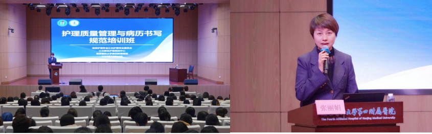 活动伊始,张丽娟书记代表医院党委,对与会专家与同仁的到来表示诚挚欢迎和衷心感谢。张书记指出,护理工作是守护人民健康的重要基石,也是医院高质量发展的核心支撑。当前,在健康中国战略深入实施、医疗卫生体制改革持续深化的背景下,护理事业迎来全新机遇,也对质量与管理提出了更高要求。她希望全体与会人员充分依托本次学术平台,深化交流、凝聚共识、加强协作,共同构建优势互补、资源共享的区域护理发展模式,持续提升整体服务能力,携手推动江北地区护理事业向更高质量、更高水平迈进。 本次活动聚焦“护理质量管理与病历书写规范”,由江北护理专业委员会副主任委员、南医大四附院护理部副主任陈春燕主持。