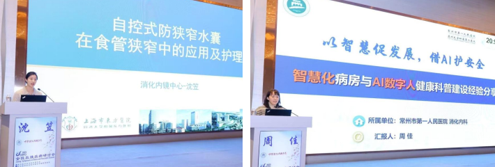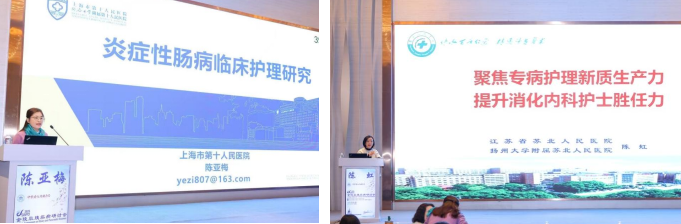 会议开幕式由专委会主任委员李雯主持。随后主旨演讲环节,特邀国内顶尖护理专家与临床医生作七场专题报告,内容兼具前瞻性与落地性,有深度和广度。 聚焦专病,深化全程管理内涵。 上海市第十人民医院陈亚梅护士长在《IBD临床护理研究》报告中,不仅分享了成熟的专病管理框架,更深入剖析了如何将心理支持、营养干预与延续护理无缝嵌入炎症性肠病患者的全程照护路径,构建了“医院-社区-家庭”联动的闭环管理模式。苏北人民医院陈虹老师则在《聚焦专病护理新质生产力 提升消化内科护士胜任力》演讲中,创新性地引入“护理新质生产力”概念,系统阐述了通过科研能力、教育能力、临床创新能力的阶梯式培养,锻造一支能适应未来医疗变革的高胜任力专科护士队伍的具体策略。 技术革新,直面临床新挑战。 上海东方医院沈笠老师介绍的《自控式防狭窄水囊在食管狭窄中的应用及护理》,不仅展示了这一创新器械的技术原理与显著疗效,更重点分享了应用过程中遇到的护理难点、并发症预警指标及一套标准化护理方案,为新技术安全、规范地惠及患者提供了宝贵的一手经验。东部战区总医院杨洋医生从外科视角带来的《克罗恩外科手术治疗围术期管理》,用大量临床案例和数据,生动诠释了外科医生对精细化围术期护理的深切期待,极大地强化了在场护理同仁对加速康复外科(ERAS)理念下多学科协作核心价值的认知。 智慧赋能,探索发展新路径。 常州市第一人民医院周佳老师的《智慧化病房与AI数字人健康科普建设经验分享》,将虚拟现实、物联网与大数据等前沿科技如何具体落地于消化内科病房管理、患者教育及健康促进进行了全景式呈现,让与会者真切感受到了“智慧护理”带来的效率提升与体验优化。江苏省中医院苏洁老师以《消化内科专科护士职业成长》为题,以其真挚动人的个人成长史,串联起专科护士从新手到专家的能力演进图谱,深刻阐述了持续学习、临床反思与专业情怀在职业生涯中的灯塔作用。南京鼓楼医院石雪平老师压轴出场,其报告《消化系统疾病循证护理实践:从证据到临床转化》如同一堂精炼的科研方法论课程,清晰指引护理人员如何从临床问题出发,检索、评价、整合最佳证据,并最终转化为可执行、可评价的护理标准与行为,架起了科研与实践之间的坚实桥梁。