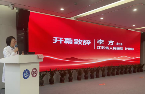江苏省人民医院护理部主任李方致欢迎词,热烈地欢迎莅临现场的各位领导和护理同仁,强调了老年护理任重道远、作用关键,从业者需兼具登高望远的格局与脚踏实地的耕耘。并且希望各位护理同仁以赛促学、以赛促改、以赛促建,推动专业知识深度交融、改善成果临床落地,凝聚职业文化向心力与价值认同。