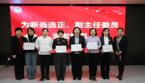 陈湘玉理事长、李国宏副理事长共同为新当选的正副主任委员颁发聘书。