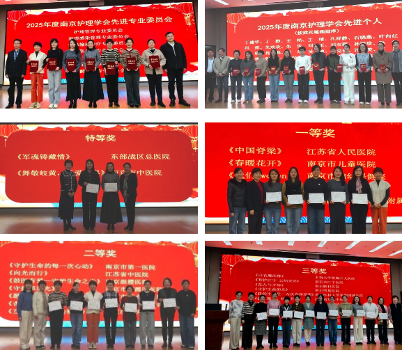 会上对2025年优质护理服务创意大赛获奖单位以及2025年度南京护理学会先进集体和先进个人进行了表彰。