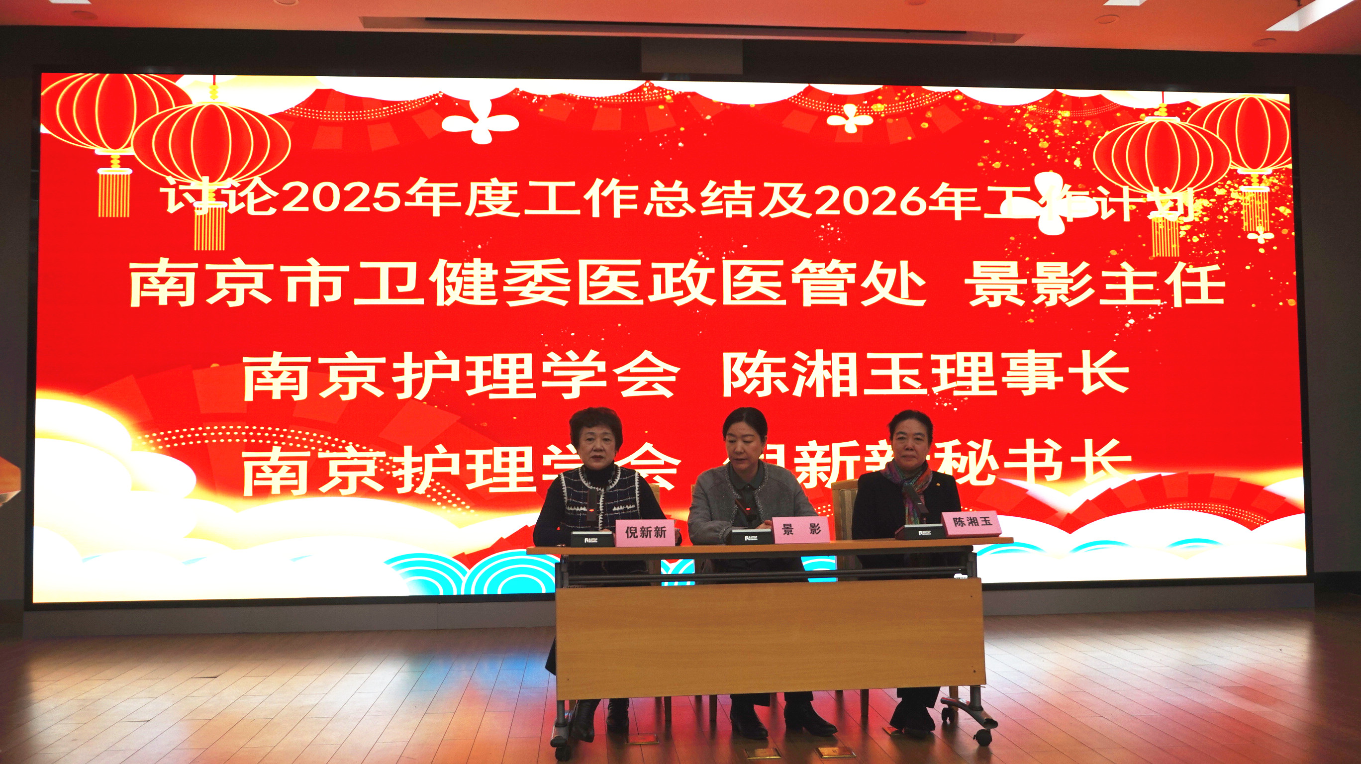 南京市卫健委医政医管处景影主任、陈湘玉理事长及倪新新秘书长共同主持了2026年工作计划讨论。会议明确,2026年学会将继续加强党建引领,不断加强自身建设,深化与政府部门的合作,积极建言献策;同时,加大护理专项培训力度,服务基层医疗机构,全面提升南京地区护理服务质量,推动护理学科向更高水平发展。