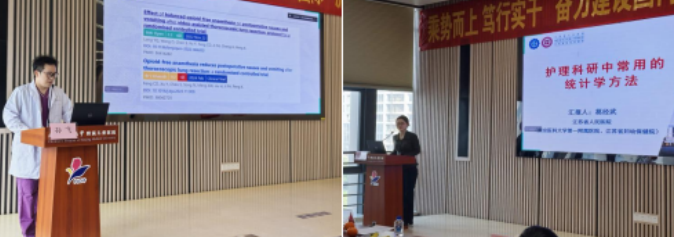 江苏省人民医院麻醉与围术期医学科护士长葛经武以《护理科研中常用的统计学方法》为题,将统计学知识与护理实践紧密结合,不断强化应用能力,以更科学、客观的方式开展研究,用数据支撑护理决策,提升护理科研质量与临床护理水平。 南京市儿童医院麻醉手术科护士长陈春梅以《新生儿气腹压力设置的循证实践:与脑氧的相关性》为题,强调了气腹压不仅关系手术视野暴露,更直接影响脑氧供需平衡,是决定新生儿脑保护效果的关键因素,通过学习进一步树立了以器官保护为目标的精细化护理理念。